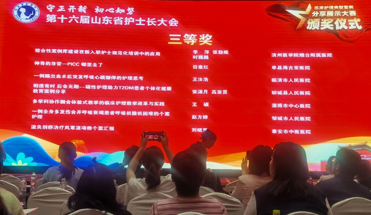 5月25-27日,山東省護(hù)理學(xué)會(huì)在泰安市舉辦"話案例,共分享,講我所做,做我所講——臨床護(hù)理典型案例分享展示大賽",全省300余個(gè)作品參加初選,最終選出164個(gè)作品進(jìn)入決賽。我院在樊金蓉主席、陳艷紅主任帶領(lǐng)下突出重圍,進(jìn)入決賽。